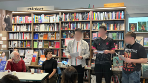 La restitution du travail effectué s’est notamment faite devant Marc, représentant de la librairie d’Alfortville et s’inscrit dans un projet menée par cette dernière : la manifestation littéraire pour les ados Vous êtes l’étincelles.